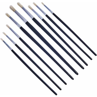 General description An assortment of nine artists paint brushes with wooden handles, suitable for various applications including hobbyist projects, craft work, and painting models. Technical specifications Set includes 9 brushes Sizes imprinted on each brush (1 - 9)
