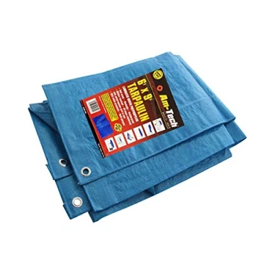 DURABLE: This 275cm (9ft) x 180cm (6ft) blue tarpaulin is made from tear proof, laminated and woven polypropylene for durability WASHABLE: Water proof and mildew resistant, it is washable for re-use VERSATILE: With durable metal grommets and reinforced rope edges, it can be used as a general cover, fly sheet, timber cover, ground sheet, dust sheet, etc, Weight: 0.84 pounds, Manufacturer: Amtech