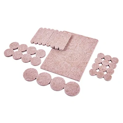 General description 33pc Self Adhesive Felt Pad Set is a versatile solution designed to protect your furniture and floors. This set includes a selection of 5 different sizes, making it suitable for various applications. Technical specifications Thickness: 5mm felt plus 1mm EVA adhesive 1pc rectangular: 152 x 114mm 8pc oblong: 66 x 12mm 12pc round: 19mm 4pc round: 38mm 8pc round: 28mm Usage These self-adhesive felt pads can be easily applied to the bottom of furniture legs to prevent scratches and damage to floors.