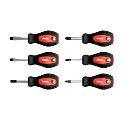 Amtech Stubby Screwdriver Set Slotted Phillips & Pozidriv Tips with Soft Grip Handles 6 Piece