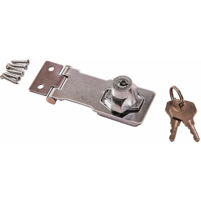 General description Integral self-locking mechanism designed for low-level security applications such as display cabinets and storage units. This hasp is constructed from durable zinc alloy and steel, ensuring longevity and reliability. Technical specifications Hasp width: 32mm Material: Zinc alloy and steel Compatibility and accessories Supplied with two keys Includes 6 screws Usage Ideal for securing display cabinets and storage units, providing a reliable locking solution. Other information Not suitable for outdoor use