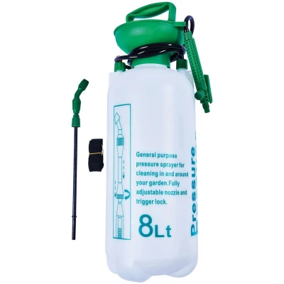 General description This 8 litre (14 pint) pressure sprayer is designed for ease of use and versatility in the garden. It features a handy shoulder strap, a fully adjustable nozzle, and a trigger lock for safety. The heavy-duty pump mechanism ensures reliable performance, while the spray lance allows you to reach awkward places with ease. Technical specifications Max. capacity: 8 litres Translucent container with measurement markings Usage Ideal for spraying water, fertilisers, herbicides, pesticides, weed killer, and detergents Also suitable for watering plants Not suitable for acid-based solutions