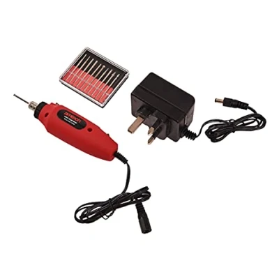 DURABLE: This mini engraver kit includes 10 varied diamond-tipped bit profiles VERSATILE: Ideal for use on glass, ceramic, plastic and metals, it can also be used for security etching EASY TO USE: It has a lightweight design and an easy on/off switch for ease of use No load speed 12000rpm with output 12V DC SMOOTH ACTION: Spring-loaded for easy repeated cutting, Manufacturer: DK Tools LTD