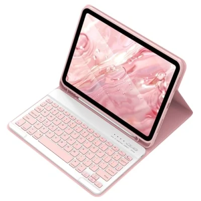 aMZCaSE Keyboard Case for iPad Air 5th and 4th Gen 10.9" 2022/2020, Pro 11" Case,Detachable Bluetooth with Pencil Holder 1st/2nd/3rd Gen,(Pink)