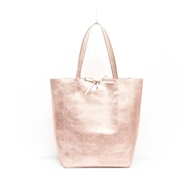 AN Direct Ladies Handbags Soft Italian Real Leather Shopper Tote Bags Women Girls College Shoulder for (Metallic Rose Gold), L