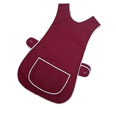 AN Direct Womens Home Work Kitchen Catering Cleaning Bar Plus Size Plain Coloured Large Pocket Side Fastening Apron Tabard (Burgundy, L)
