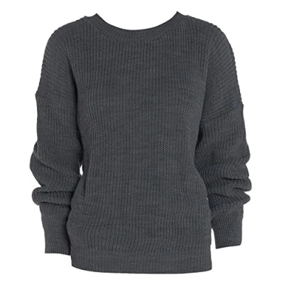 AN Direct Womens Oversized Ladies Fishnet Knitted Baggy Chunky Jumper Loose Sweater Top (Charcoal, 12 14)