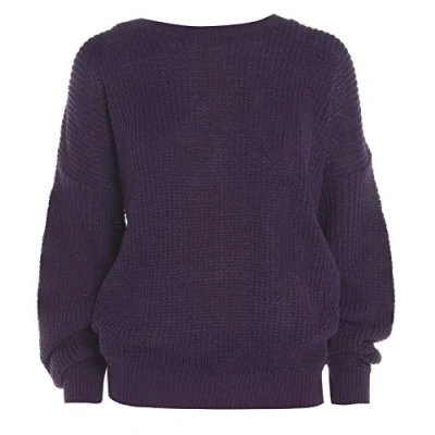 AN Direct Womens Oversized Ladies Fishnet Knitted Baggy Chunky Jumper Loose Sweater Top (Purple, 20 22)