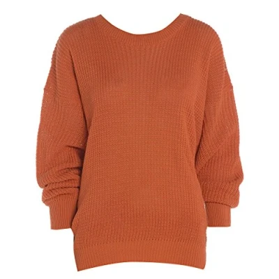 AN Direct Womens Oversized Ladies Fishnet Knitted Baggy Chunky Jumper Loose Sweater Top (Rust, 12 14)