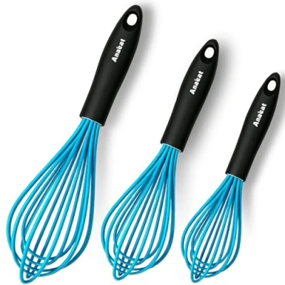 【FATIGUE-FREE MIXING】8.5"+10.5''+12'' THICKENED WIRE & comfy nonslip grip made Anaeat WHISK can be fatigue-free MIXING. Proper balance between floppy and sturdy. More guaranteed than others. 【GREAT FOR NON-STICK POTS AND PANS】Anaeat WHISK have Sturdy Silicone Protective Cover which is non-stick itself and won't scratch the non-stick coating in your Pots and Pans. Easy cleaning after using. Anaeat Whisks are perfect with your cooking ware. 【SOFT, COMFORTABLE, NON-SLIP HANDLE】Anaeat Innovative ergonomic handle shape and soft, comfortable grip to absorb pressure, Its excellent balance and control, let you really feel the quality of Anaeat . 【HEAT RESISTANT & DURABLE & HEALTHY】Silicones are resistant to heat up to 450 degrees Fahrenheit, making them ideal for cooking almost any favorite food. Anaeat WHISK won't discolor, warp or melt. Easy to clean - Dishwasher safe. BRAND QUALITY GUARANTEE - QUALITY CAN SPEAK ITSELF. Anaeat focuses on kitchenware research and development. We are so confident that we have the best Silicone Balloon Whisk on the market. If you have any problems with Anaeat products, feel free to send us a message by Amazon and we resend to you right away for free, or full money back. We are very concerned about every order, and try our best to Provide our customers with HEALTHY & DURABLE kitchen accessories., Manufacturer: Anaeat