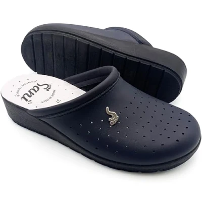 Anatomical Sanitary Slippers for Women Genuine Leather Orthopedic Shoes Non Slip Made in Italy, blue, 5 UK