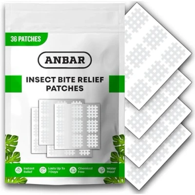 Anbar Bug Bite Itch Relief Patches to Relieve Itchy Irritation and Swelling, Mosquito, Tick, Midge, Fly, Sandfly Post Skincare, Natural Deet Free Patch, 36 Pcs, Clear