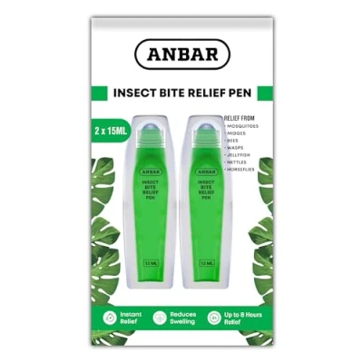 Rapid Bug Bite Itch Relief – This insect bite relief formula is designed to relieve the itchy irritation caused by common bug and insect bites. It works to soothe and calm irritated skin and minimize the itching and scratching so your skin feels better fast. Portable Applicator Pen – Far more convenient than creams or gels our insect bite relief comes in a compact, travel friendly applicator pen that lets you apply it directly to the skin without making a mess or getting it on your fingers or clothes. Covers Bites and Stings – Our anti itch bug bite relief can be used for a wide range of different insect bites or stings including those from mosquitos, flies, jellyfish, bees, wasps, and even stinging nettle plants making it essential for outdoor adventures. Long-Lasting Protection – The Anbar mosquito itch relief formula is made with natural ingredients that provide up to 8 hours of consistent relief. It’s gentle on soft, sensitive skin and completely deet free making it great for kids, teens, and adults. Clean, Fresh, Fast-Drying Finish – Our topical mosquito bite relief dries quickly on the skin without an overpowering scent, so you can apply it to your arms, legs, feet, hands, and just about anywhere else you need fast relief. No mess, no fuss, just relief.