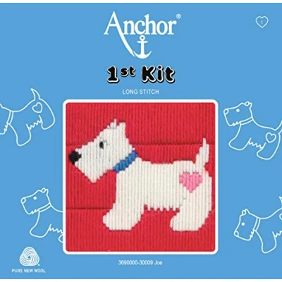 Anchor First Kit First Kits for kids Includes Colour Printed chart and Instructions Needle and Cardboard surround for framing White 9 count aida and Anchor Long Stitch Wool