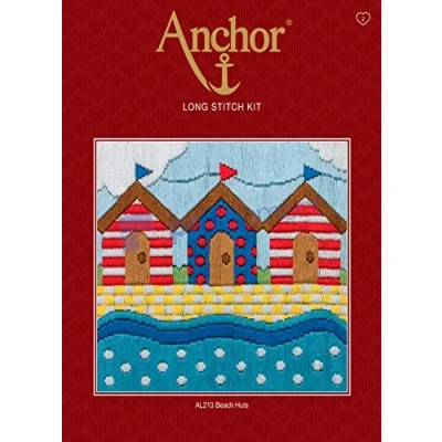 Anchor Long Stitch - Beach Huts Longstitch Kit Beach Huts 15 x 15 cm Uses Anchor Stranded Cotton