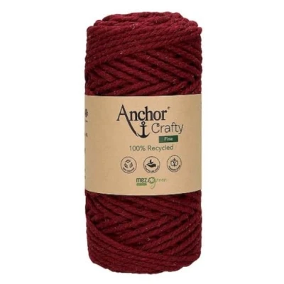 Anchor Crafty Fine Macrame Cord. 00119 250 g Burgundy. Approx. 65 m. Cotton Polyester Mix Vegetable Dyed Twisted Soft 3 Ply