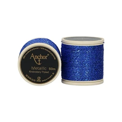 Anchor Embroidery Threads, 42% Polyamide, 58% Metallised Polyester, Blue, 50m, 12