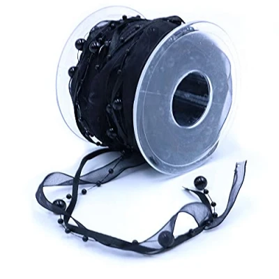 ANCLLO 10M Artificial Bead Ribbon Chiffon and Organza Lace Trims for Wedding Flower Christmas Tree Decoration Sewing Craft Packaging Black