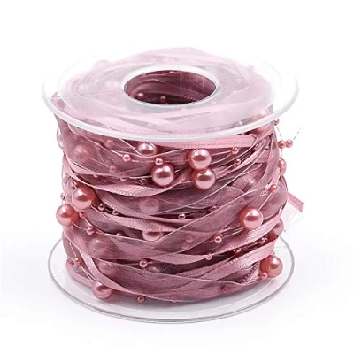 1 roll Artificial String Beads with Organza lace, It is enough length to meet all your needs, you deserve it. These beads ribbons are 33 feet(10 meters) long, enough length for Christmas tree wedding flower decoration, add a good additional festival atmosphere. 3 Strings Ribbon in Satin Ribbon with Mixed Beads, unique and elegant, it will enrich your party. Each Organza Artificial Pearls String Beads with lace has a reel, easy to organize,pearls strands can be cut any length what you want. Bead Ribbon is ideal for most occasions like beaded curation,wedding centerpieces, wedding garland, bridal bouquet and so on.