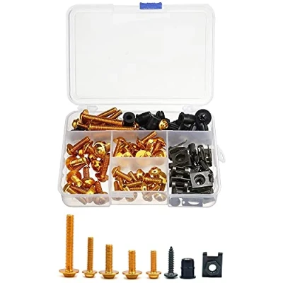 ANCLLO 177pcs Motorcycle Fairing Bumpers Panel Bolts Kit Body Fastener Clips Screw Set Universal Gold