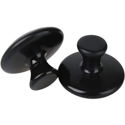 ANCLLO 2Pcs Hot Stones Mushroom Shaped Massage Warmer Natural Tools for Body Face Essential Spa Therapy Black