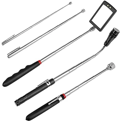 ANCLLO 5PCS Telescoping Magnetic Pickup Tool Extendable Magnet Stick with 1.5LB 3LB and 15LB Mirror, Flashlight