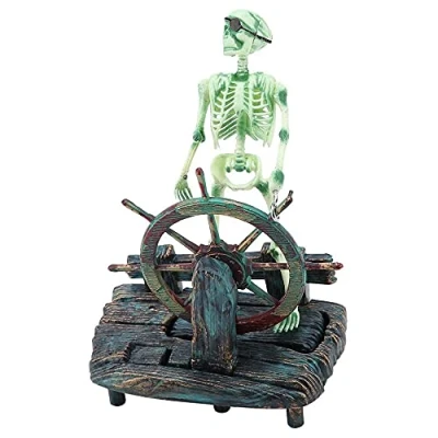 ANCLLO Aquarium Hippocampus Pirate Captain Skeleton Decoration Fish Tank Landscape Ornament