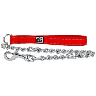Ancol Extreme Dog Extra Heavy Chain Lead in Red Duty Anti Bite Pet Leash Chrome Plated Puppy Accessory with Reflective Handle 80cm
