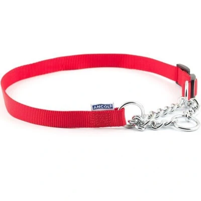 AmazonThe soft nylon and chain combination allows one to correct one's dog with a checking action The half check collars are highly recommended by a lot of dog trainers as part of one's training regime Available in red, black, blue and raspberry, to fit 45cm-60cm necks Model number: 158920