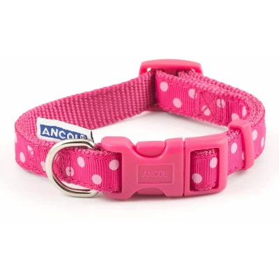 Ancol Indulgence Vintage Polka Nylon Adjustable Collar 20 30 cm Raspberry/Pink
