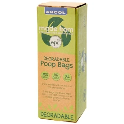 MADE FROM RECYCLED MATERIALS - Reduce your environmental impact with Ancol’s heavy-duty large dog poo bag roll dispenser. These bags are made from 40% recycled content, helping to use up ocean-bound plastics and reduce waste. BIODEGRADE BAGS - Reduce your impact on the environment with this pack of biodegradable large dog poop bags. Designed to degrade with the help of oxygen, these bags will break down into only biomass, CO2 and water once they are disposed of. LARGE AND RELIABLE - Ancol large dog poop bags with tie handles provide strength and reliability while being gentle on the environment. A perfect pick for pet owners who want to responsibly dispose of their pet's waste. PACK OF 300 - Never run out of bags again! This pack contains 300 giant extra strong poo bags for large dogs, so you’ll always have one ready when needed. Perfect for any family who has multiple pets. REDUCE PLASTIC WASTE - Each Ancol bag is 100% compostable and contains the equivalent of 2 recycled plastic bottles! As a responsible pet owner making a conscious choice to reduce your pets’ carbon pawprint will make all the difference in our environment.