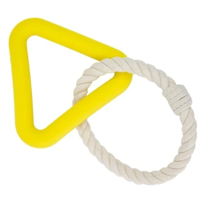 Ancol Playtime Natural Ropey Triangle Dog Toy 26cm, Yellow Cotton Rope Tug Toy, Great for Chewing & Interactive Play