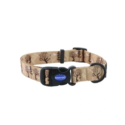 Ancol Woodland Patterned Round Dog Collar Lightweight Sturdy Adjustable Buckle Durable Secure Fit Soft Comfortable Stylish Pet Puppy Leash Medium
