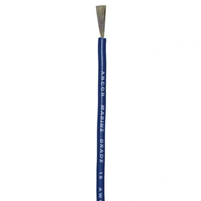 500 Feet of Dark Blue 18 AWG marine grade wire Manufactured from individual copper strands and tinned to perform in the harshest marine environments Ultra-flexible Type 3 stranding resists fatigue from vibration and provides added corrosion protection Exceeds all UL 1426, US Coast Guard Charter boat (CFR title 46) and ABYC standards They are constructed with premium vinyl insulation that is rated at 600 volts, 105 deg C dry and 75 deg C wet, stays flexible even in extreme cold (-40 deg F/C) and resists salt water, battery acid, oil, gasoline, heat, abrasion and ultra-violet radiation Sport type: Boating, Weight: 5.2 pounds, Manufacturer: Ancor Marine Grade Products