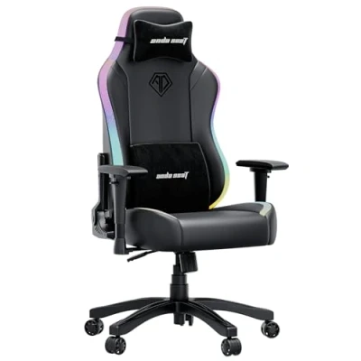 Ultimate RGB Gaming Chair: anda seaT is a leading gamer chair manufacturer. All our video game chairs for adults are designed and tested by multiple gaming expert teams. Recommended maximum height: 5'11" / 200cm. Maximum weight capacity: 110kg / 240lbs Light Up Gaming Chair: Customisable RGB Gaming chair with LED lights, easily controlled by 3 buttons to enhance your gaming setup; whether you choose a steady glow or pulsating effects, create the optimal atmosphere for any session with a range of colours Heavy Duty Office Chair: A luxurious ergonomic gaming chair for adults with thick high-density one piece 55 kg-m³ foam; the removable medium sized headrest pillow and medium lumbar cushion provides spine and neck support for a comfortable seated position Swivel Recliner Chair: Adapt your comfy gaming chair to suit you; the reclining gaming chair tilts 90-160 degrees with angle lock at 12 positions; adjust the height of your folding office chair with high performance Class 4 Hydraulic Nitrogen Pistons Premium PVC Leather Gaming Chair: Smooth bonded PVC leather computer gaming chair, with scratch and stain resistance; as a previous race car seat manufacturer for BMW and Mercedes Benz, we insist on using the same PVC leather material for our gamer chairs