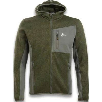 Amazon Fabric 1: 100% Polyester Fabric 2: Stretch polyester Fixed hood with elasticated Lycra edge Three front pockets with zip closure Service pocket with zip closure on left sleeve