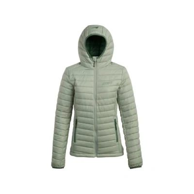 Lycra cuffs and adjustable drawstring at the bottom of the bust Two front pockets with zip closure Fabric: 100% Nylon Mini Ripstop Fixed hood with Lycra trim Versatile thermal jacket with Sorona padding and ripstop nylon outer fabric.