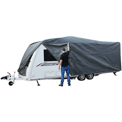 HIGH QUALITY CARAVAN COVERS – Made from Heavy Duty Polyester, our caravan covers are breathable, soft and lightweight ensuring no damage or scratches will be made to your caravan when covered. UNIVERSAL FITTINGS – Although it’s not a bespoke sized cover, our covers offer protection all year round. From rain, snow, dust, dirt, bird droppings, heat and even UV rays. TRIPLE LAYER PROTECTION – Outer layer protects the caravan from the outside elements. Middle layer allows the cover to breathe by allowing condensation to escape but not letting rain water in. The inner layer is extremely soft and non-abrasive to prevent the cover from scratching your caravan. DUAL ZIPS AND STRONG STRAPS – Dual zips allow access from the left-hand side. Strong straps to ensure the product lasts. SIZE GUIDE - Andes caravan covers come in six different sizes, please see size guide below