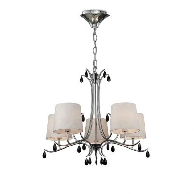 Andrea Ceiling Pendant 81.5cm Round, Polished Chrome, White Shades, Black Crystal Droplets