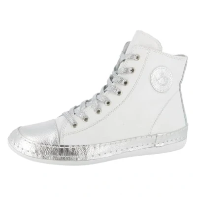 Andrea Conti Women High Top Sneakers, White/Silver, 8 UK