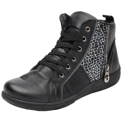 Andrea Conti Women's Laces Sneaker, Black Silver, 3.5 UK