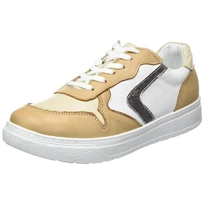 Andrea Conti Women's Trainers Sneaker, Camel Cream White Silver, 4 UK