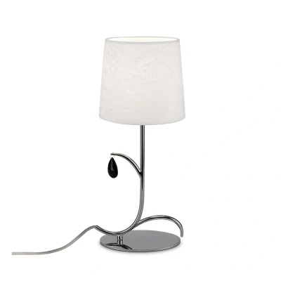 Andrea Table Lamp 45cm, Polished Chrome, White Shades, Black Crystal Droplets