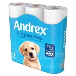 Andrex Complete Clean Toilet Tissue Standard Rolls, Unique 3D Wave Texture for a Proven, Effective Clean, Loo 9 Rolls