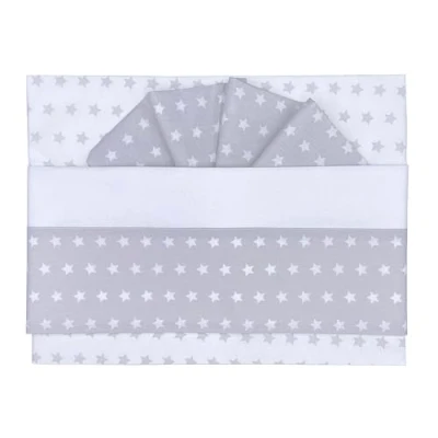 Andy & Helen 3 Piece Maxi Cot Bed Set Flat Sheet + Duvet Cover Pillowcase Stars Grey
