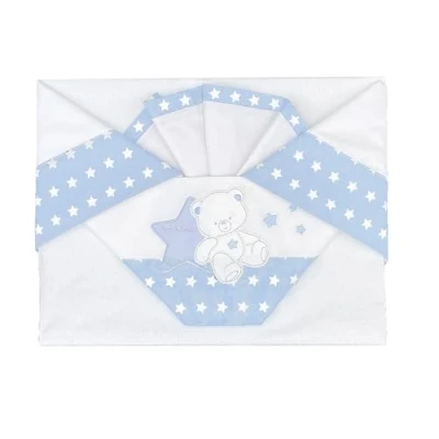 The Andy & Helen Maxi/ Next To Me Crib Sheet Set is made with the finest quality cotton for comfort and a peaceful sleep from the very first days. Consists of top sheet with embroidery in the middle + bottom with elastic bands to fit perfectly on the mattress + pillow case. The bear star pattern gives the bedroom a clean and modern touch and easy to combine with other duvets and blankets. The set is made entirely in Italy with Italian cotton to preserve the quality of Made in Italy that distinguishes us. Fits MAXI/NEXT TO ME cots/SIDE BED cots. Measurements: top sheet 110 x 80 cm – fitted sheet 45/60 cm to 90/105 cm with corners, 37 x 28 cm. Size not suitable for bed with bars 100% Cotton, Machine Washable