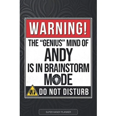 Andy: Warning The Genius Mind Of Andy Is In Brainstorm Mode Name Custom Gift Planner Calendar Notebook Journal