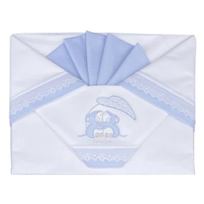 The Andy & Heen crib sheet set is made with premium quality cotton to provide comfort and a peaceful sleep from the very first days. Consists of top sheet with embroidery in the middle + bottom with elastic bands to fit perfectly on the mattress + pillow case. The pattern can give the bedroom a clean, modern touch and easy to combine with other duvets and blankets. The set is made entirely in Italy with Italian cotton to preserve the quality of Made in Italy that distinguishes us. Fits Cribs/Prams/Carrycots. The top sheet also fits a maxi cot. The bottom sheet only fits cot - prams and carrycots. Size: 110 x 80 cm, top sheet, 100 x 50 cm, bottom sheet - 37 x 28 cm. Pillowcase. 100% Cotton, Machine Washable