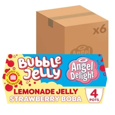 Angel Delight Lemonade Jelly and Strawberry Boba Bubble Dessert Snack Pot, 130 g (6 Packs of 4)