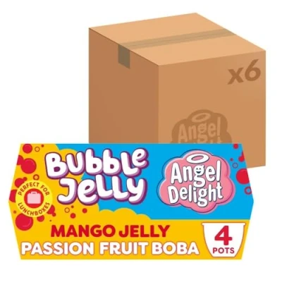 Angel Delight Mango Jelly and Passionfruit Boba Bubble Dessert Snack Pot, 130 g (6 Packs of 4)
